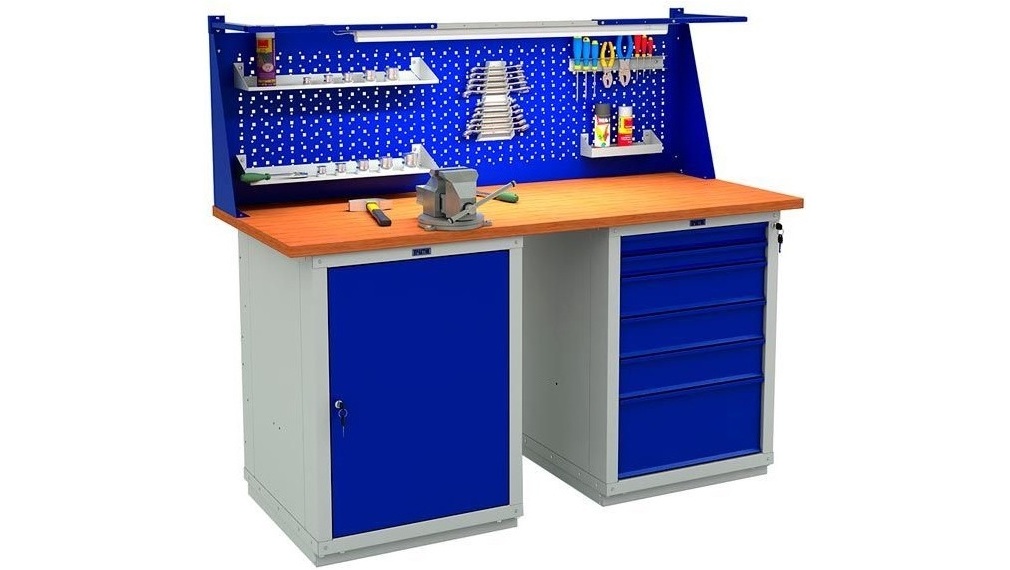 Это совсем другое дело: тут речь идёт о починке и сборке приборов, машин и всего, что в наше время делается из металла, вплоть до микросхем. На бедный верстак льются масла и растворители, летят искры, а иногда водружаются тяжёлые и габаритные детали и устройства, нуждающиеся в «лечении». Такие модели, можно сказать, с ног до головы одеты в металл. Поверхность надёжно защищена листом оцинкованной стали и не боится никаких технических жидкостей. Поцарапать или прорезать её тоже надо постараться, поэтому она куда дольше прослужит вам, сохраняя при этом аккуратный вид.